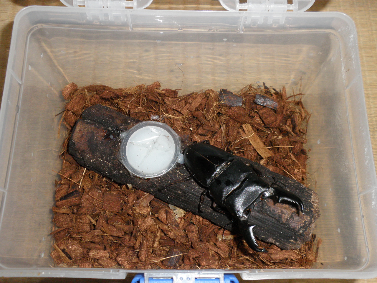 オスは知人から譲って頂いた個体で、昨年の夏、採集されたものです。約40㎜と小さめですが、かなり元気が良いため子孫を残してあげたくなりました。