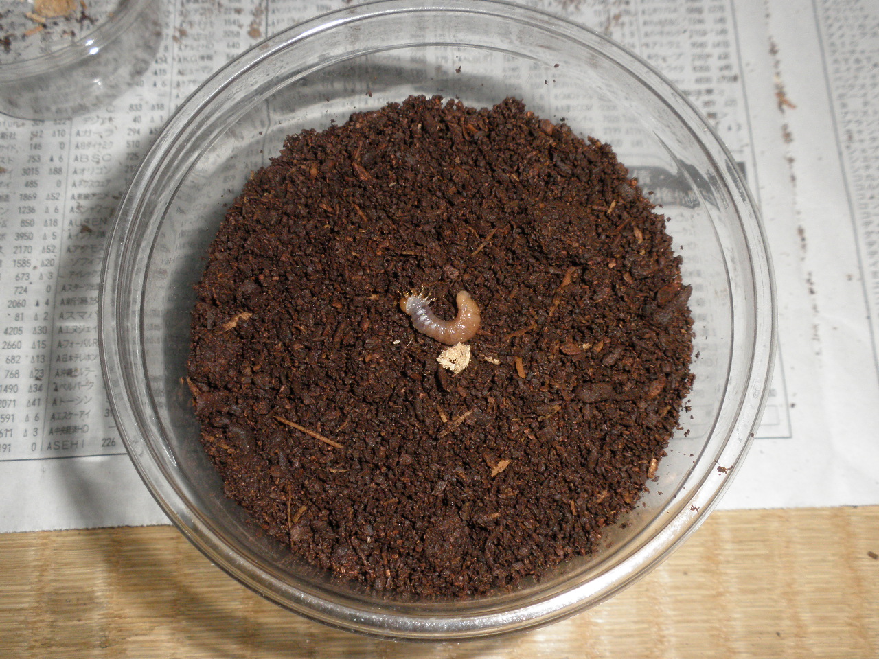 その後マット飼育を続けていた幼虫たちの中で、ちらほらとマットの表面に出てきてしまう幼虫が見られるようになりました。