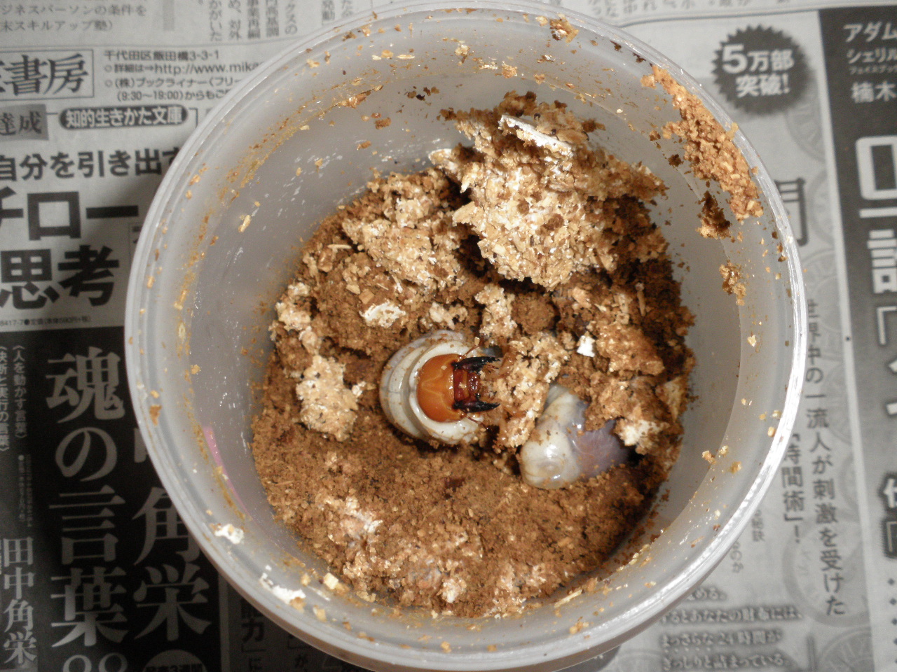 スマトラオオヒラタ スマトラオオヒラタの本命ライン、菌糸ビン投入! みなさんこんばんは、鷹です! 2月にブリードを開始したスマトラオオヒラタクワガタの本命ラインですが、3月15日に産卵セットの割り出しを行った際には、 幼虫11頭 と 卵2個 を取り出すことができました。 12月に割り出しを行った2ラインほど 2018.04.12 スマトラオオヒラタ飼育日記